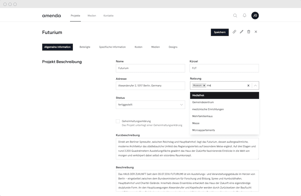 Architekturprojekte, Bilder und Kontakte auf einen Blick: Mit amenda erfassen Sie alle wichtigen Kennwerte Ihres Architekturbüros in einer zentralen Datenbank und verknüpfen sie nahtlos mit Bildern und Kontaktdaten. Finden Sie so mühelos die gesuchten Informationen – jederzeit und überall.